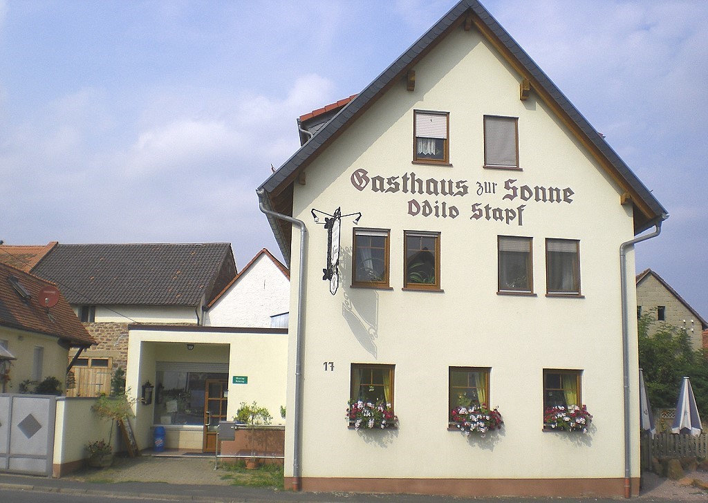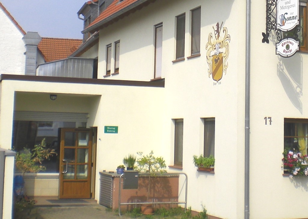 Leider haben wir keine Gästezimmer. Wir können Ihnen aber sehr gute Unterkünfte in Schmachtenberg, Mönchberg und Umgebung empfehlen. In unserer hauseigenen Metzgerei (seit 1876) stellen wir nach über vielen Jahre überlieferten Rezepturen feinste Spezialitäten und zünftige Hausmannskost wie Schwartenmagen, Presssack u.a., her (mehr Info hier klicken). Bekannt gut bürgerliche Küche. Schöner Biergarten. Sitzplätze / Personen Gastraum: 60 Biergarten: 50 Öffnungszeiten: Di bis Fr 09.00 bis 22.00 Uhr Samstag 08.00 bis 22.00 Uhr Sonntag 11.00 bis 22.00 Uhr Montag Ruhetag. Bitte besuchen Sie uns auch auf unsere Homepage: https://zur-sonne.spessartland.de Zum Routenplaner (Google) Gasthaus Metzgerei "Zur Sonne" OT Schmachtenberg 63933 Mönchberg Telefon:0 93 72 / 25 21 e-mail: stapf-gasthaus-sonne@web.de (wird nicht ständig abgerufen!) Seien Sie unser Gast und lassen Sie sich herzlich bewirten. Ihre Familie Stapf Anschließend automatische Slidershow nach 3 Sekunden. stop |